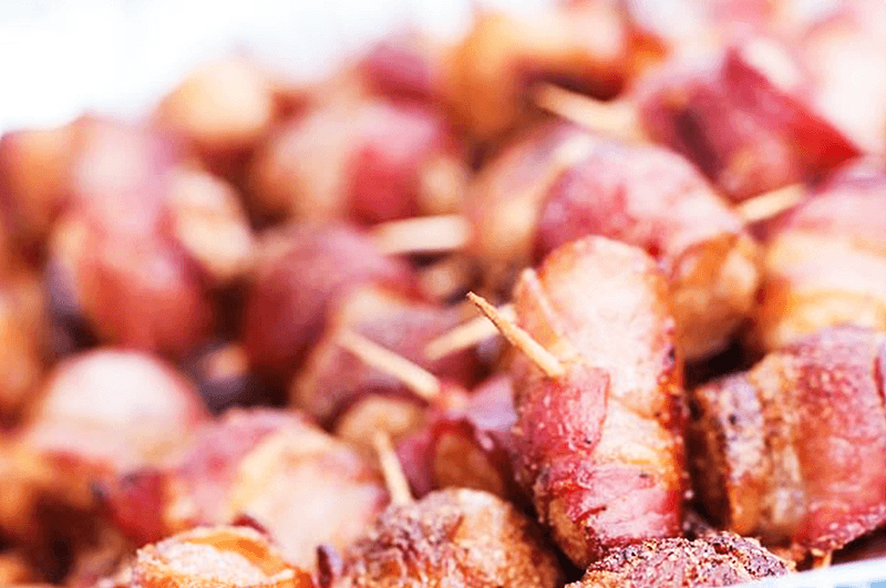 Avslutningsvis, här är ett kanonrecept som är väldigt enkelt att tillaga. Köp Doughnuts holes – finns att köpa hos en bra konditor – det är vad som blir över när man gör hål i munkar. Rulla en halv baconskiva runt ”hålet”, och krydda med BBQ krydda. Grilla tills baconskivan är krispig – Perfekta snacks!!
