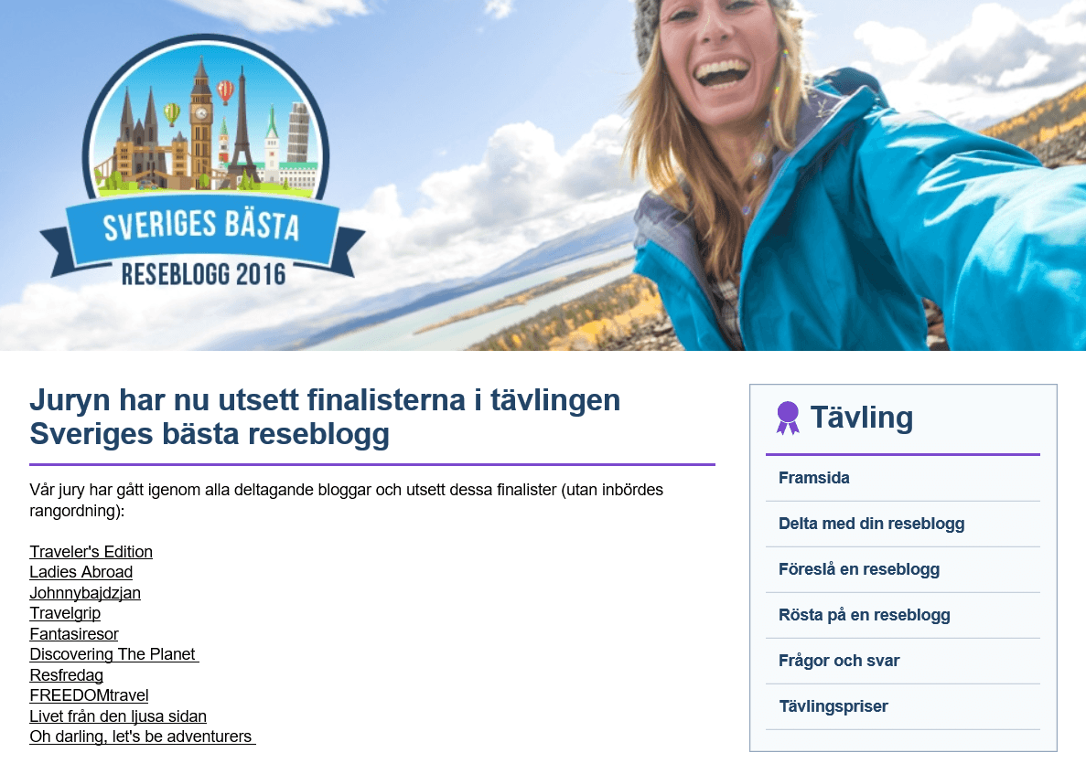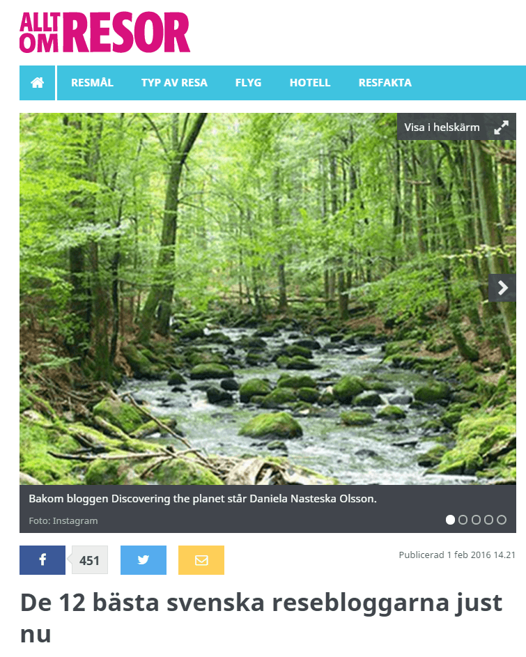 Happy to say that I made the list on Expressen for the Twelve best travelbloggers in Sweden. Also made the list on Travelmarket for the Top Ten Best Swedish Travelbloggers.