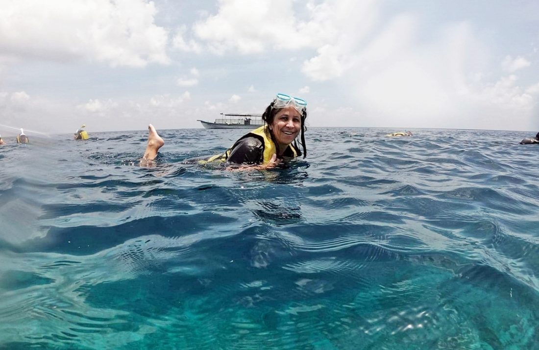 Båten stannar. Vi är framme vid vår första snorklingsite. Våtdräkten på. Snorklingsutrustningen på. Mobilen i sin täta påse. Check, check och check. Och så är vi i. Vi är en liten grupp på nio personer och åtta av dem letar redan fiskar och mantor. Jag har inte tid att leta efter något. Kämpar med håret som glider fram över masken. Kämpar med snorkelutrustningen. Kan inte se. Kan inte andas. Den vattentäta påsen till mobilen, som ska föreviga stunden, öppnar alla andra appar utom kameran. Jag börjar bli frustrerad. Jag har någonstans börjat förlika mig med känslan av att idag, kanske inte är dagen för min date med en djävulsrocka. Dagen är underbar, vi är på Maldiverna och i Indiska Oceanen, vi är på havet och jag är på benen. Så jag får väl ändå vara nöjd?!