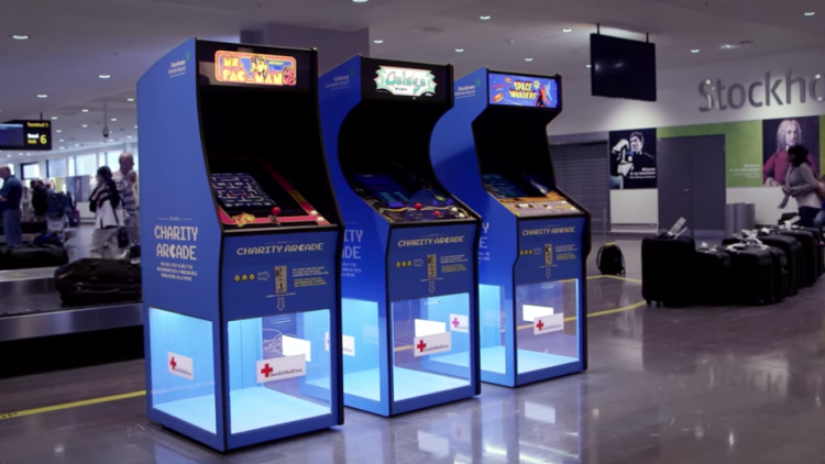 Du kan lägga dem i en Insamlingsbössa nästa gång du får chansen. Men du kan också spela bort dem. På Arlanda och Landvetter har Röda Korset och Swedavia placerat ut arkadspel som fungerar med alla typer av mynt. Pengarna går oavkortat till välgörande ändamål i Röda Korsets regi. Spelen är klassikerna Space Invaders, Pac-Man och Galaga. Spelautomaterna har uppmärksammats internationellt och kallats genialla av blanda annat CNN.