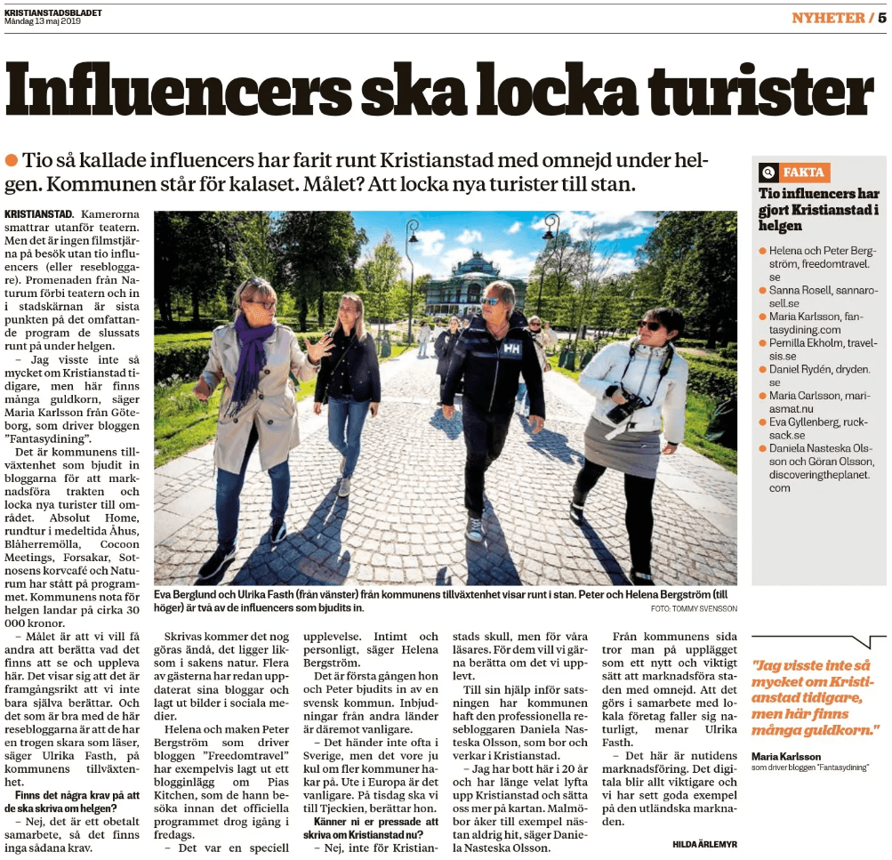 För någon månad sedan startade jag och Tillväxt Kristianstad ett gemensamt projekt för att marknadsföra Kristianstad. Första steget var att bjuda in åtta resebloggare från hela Sverige på en pressresa hit för att uppleva Kristianstad kommun under en helg. Och vi hade dessutom tur med vädret. Jag är oerhört stolt över att lilla Kristianstad har vågat ta steget från analog marknadsföring till digital och att samarbeta med resebloggare för att visa upp kommunen. Numera är det ju där vi letar inspiration inför våra resor. Både inom och utom landet.