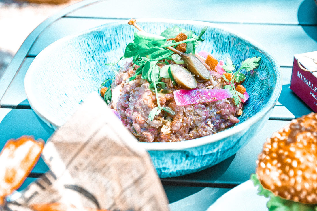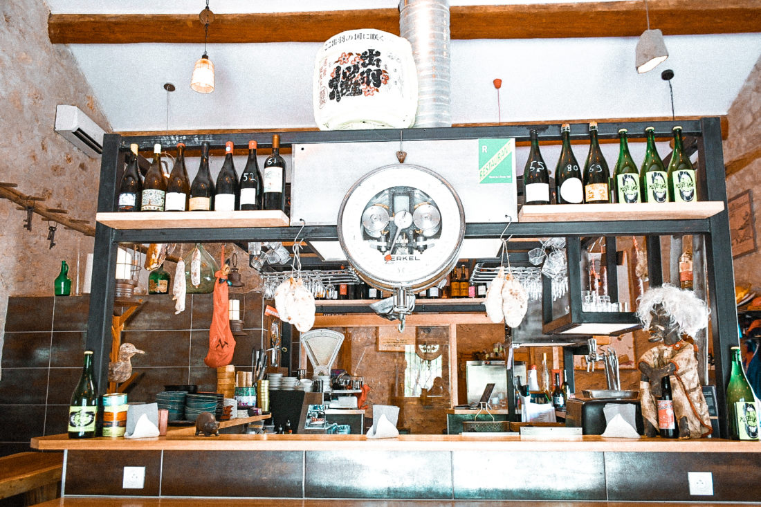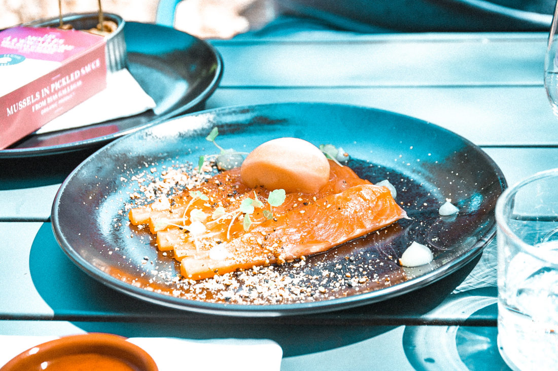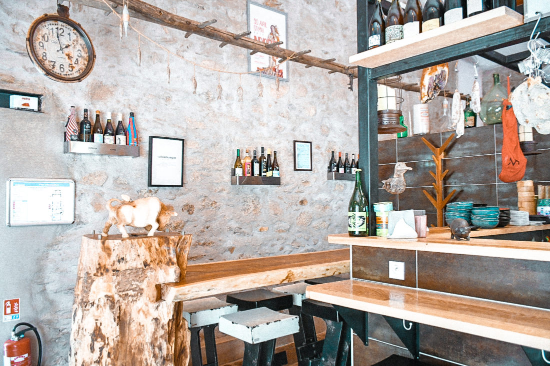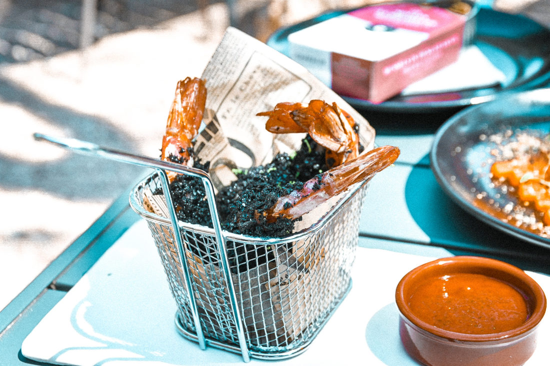 På bistro Trou du Kru , hitta vi en bistroatmosfär med de mest fantastiska smårätter. Här bjuds man på ”tapetas” tillagade av veckans lokala råvaror specifika för säsongen. Vi beställer in lite rätter enligt rekommendation och några vi aldrig testat förr. Råbiff, minihamburgare, musslor, friterade jätteräkor och gravad lax [som jag fått noja på på denna resan. Till efterrätt glas och en helt ljuvlig mousse serverad i en glasburk.