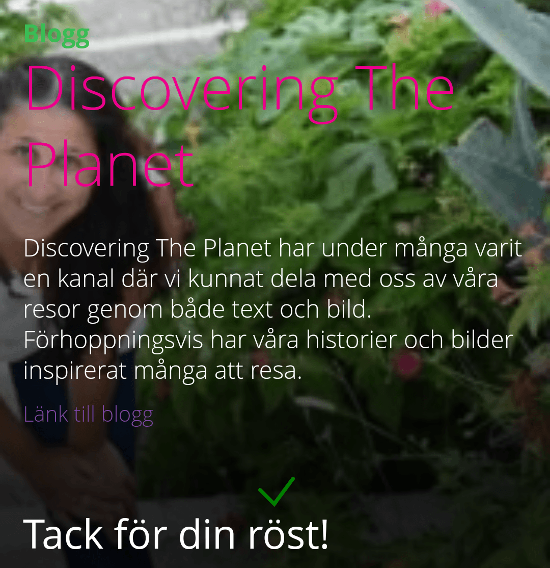 We are in running for the top ten travel blogs in Sweden in Momondos competition Open World Award. If you like what we do, we would be greatful for your vote.